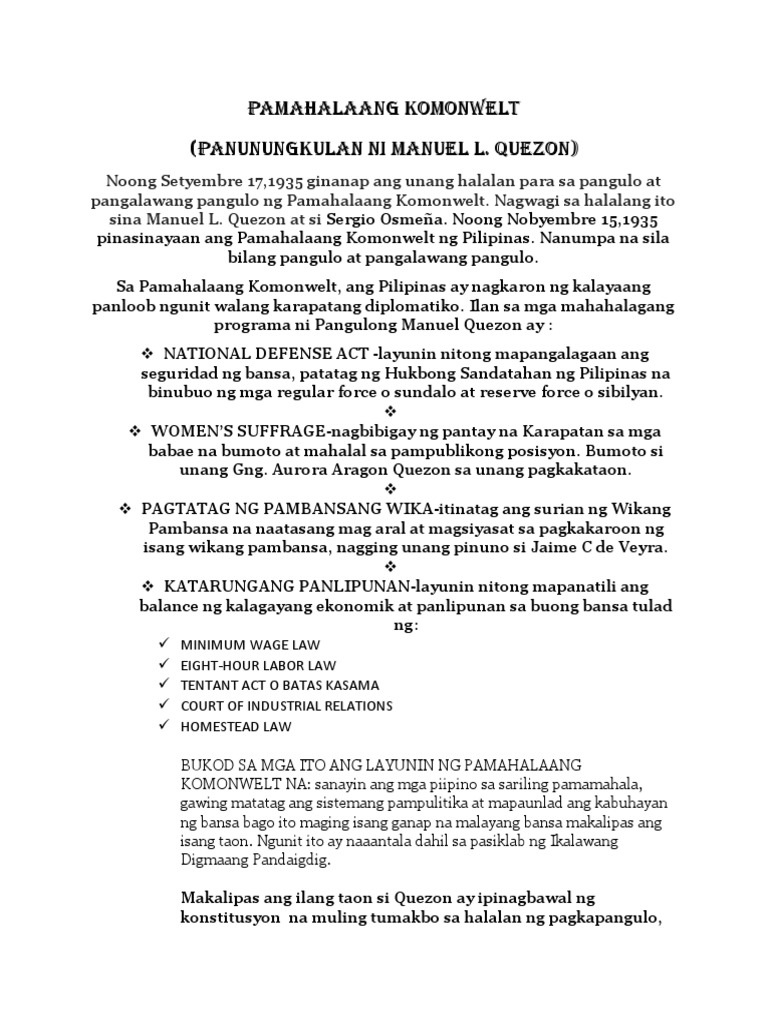 Ano ang pangunahing layunin ng pamahalaang komonwelt Get the answers you need now. Pagkliklino ano ang pagkasunod sunod nila1naguumapaw sa kaligayahan - walang pasidlan ang tuwa- napatalon sa galak2. Anu -ano ang sinasaad ng pamahalaang komonwelt.