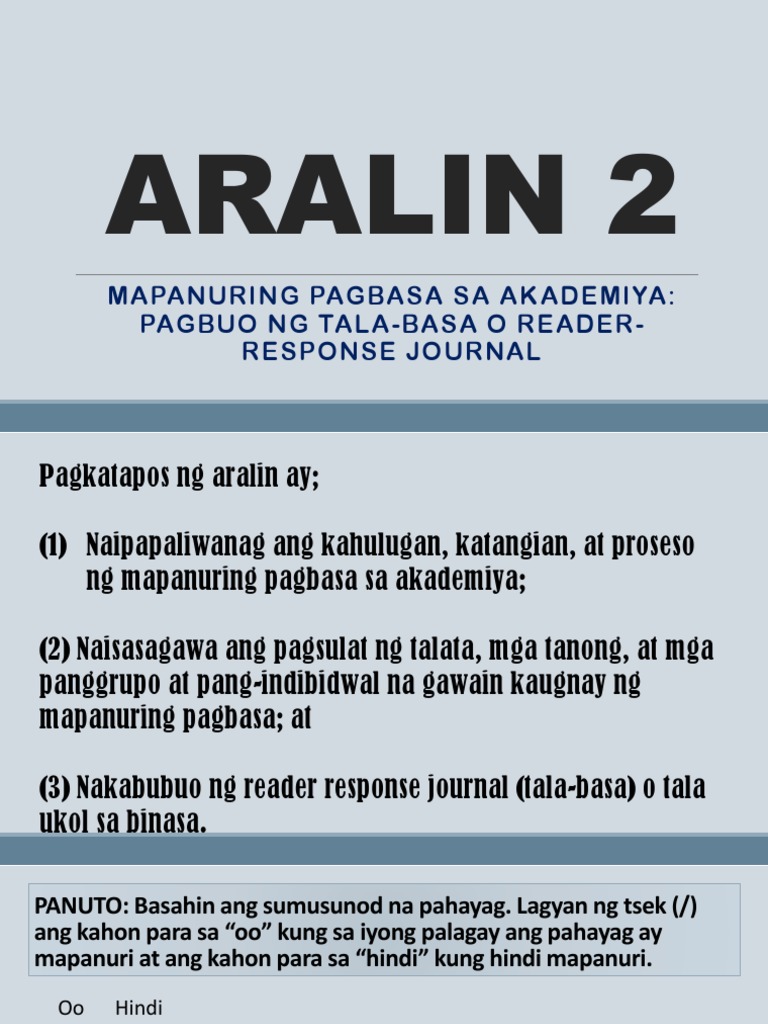 1 See answer hdog2953 hdog2953 Answer. Ano po ang iyung binasa para Ito ay masagutan. 3 question Anong uri ng pagsulat ayon sa layunin ang iyong nabasa bakit.