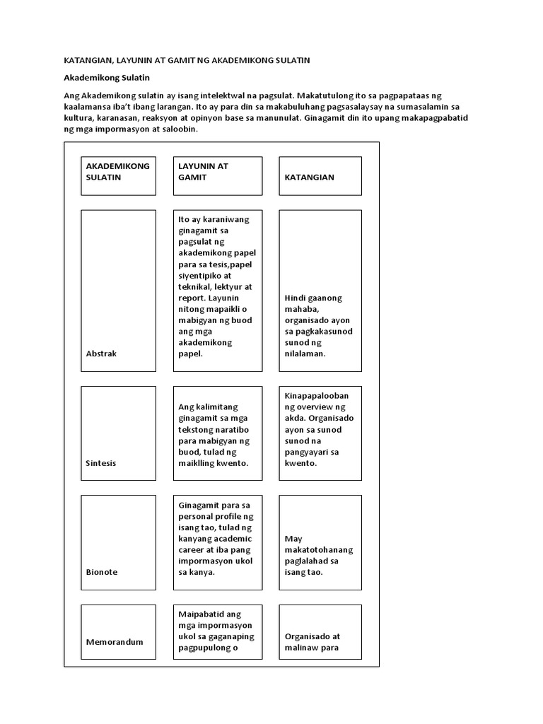Akademikong Sulatin Layuningamit At Katangian Docx Akademikong Sulatin Abstrak Sintesis Bionote Memorandum Agenda Panukalang Proyekto Talumpati Course Hero