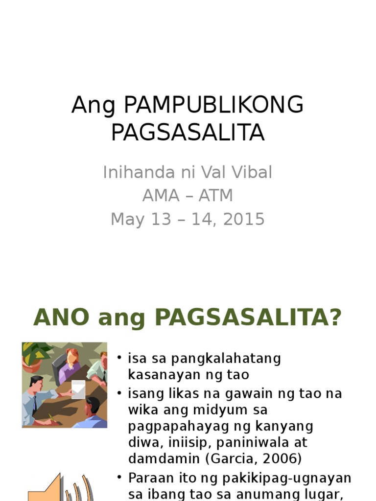 PAGSASALITA SPEAKINGAs it is the characteristic of great wits to say much in few words so small wits seem to have the gift of speaking much and saying nothing. Pagpapanatili ng Usapan Making Communication Works 125Pagpapaulit ng sinabi ng isang tao 126Pagtiyak checking na naunawaan ang narinig 127Pagtiyak na naunawaan 128Pag-uulit ng sinabi ng iba 129Pagsasabi ng isang bagay sa ibang paraan 130Pagbibigay ng halimbawa 131Pagpapakita na nakikinig ka 132Paglilinaw ng isang puntotaking-up a point 133Pagbibigay sa sarili ng panahong mag-isip 134Pagpapalit ng. Ang mga heologo ay may layunin isa na dito ay ang mga pagtukoy sa mga edad ng FOSSILS ng mga hayop tao at mga halaman na nabuhay noon.