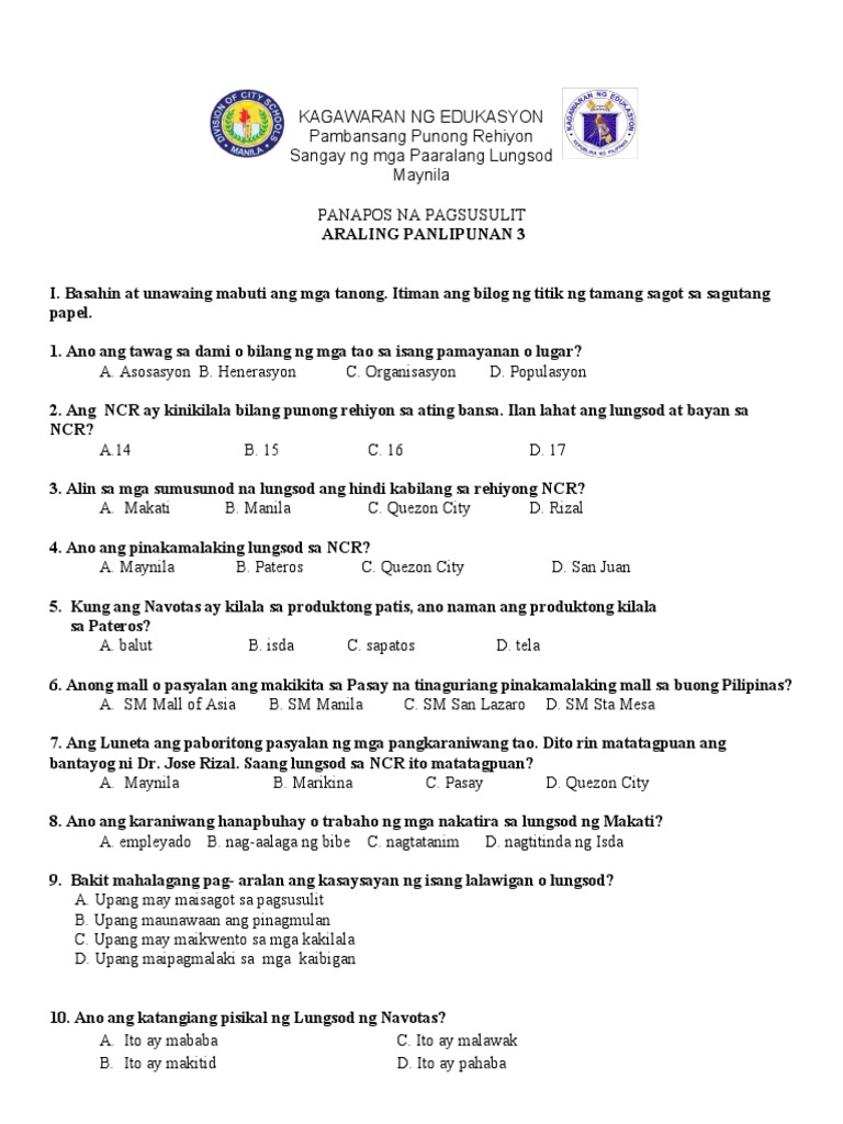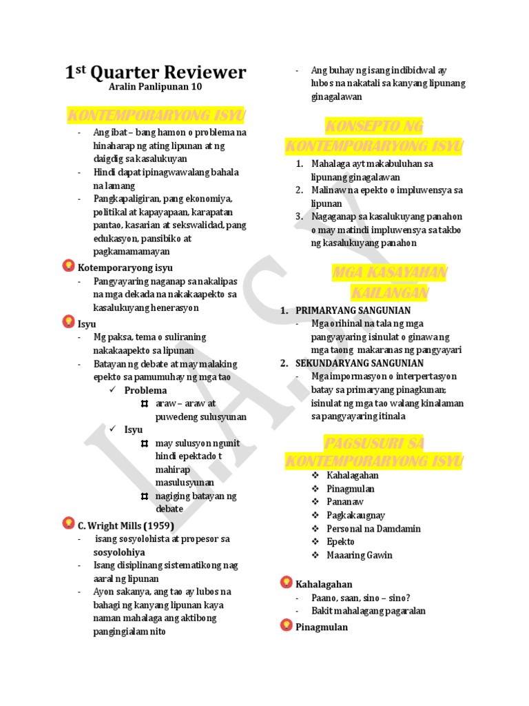 1st Quarter Aralin Panlipunan 10 Reviewer