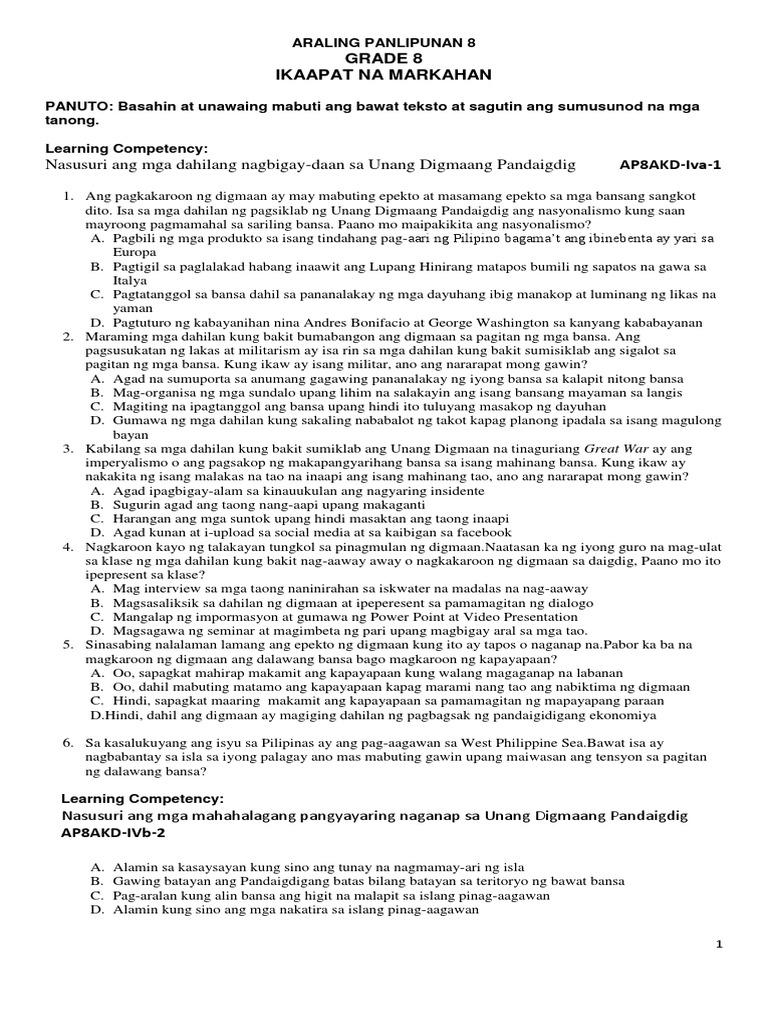 Grade 9 Esp Learning Module 1 Docx