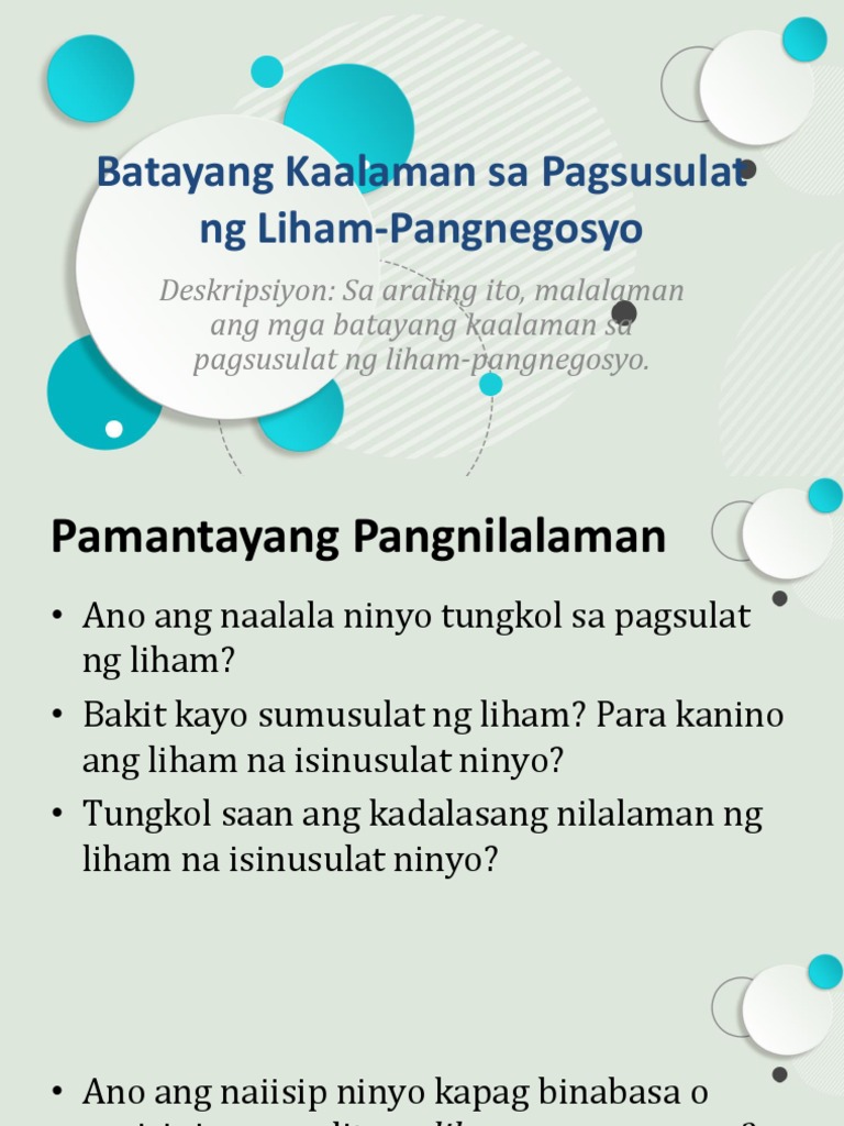 Batayang Kaalaman Sa Pagsusulat Ng Liham Pangnegosyo