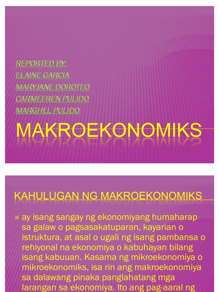 Ito ang nag-aaral ng sukatan ng pag-unlad. Mahalaga na ating mapag-aralan ang makroekonomiks sa dahilang nagbibigay ito sa atin ng ideya upang tukuyin ang. Maykroekonomiks Pag-aaral ng maliliit na yunit ng ekonomiya Halimbawa.