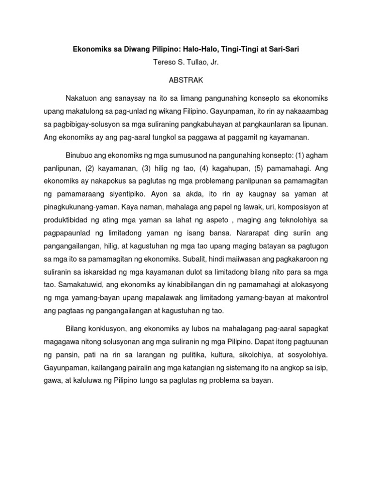 Ekonomiks Sa Diwang Pilipino Pagsusuri Pdf Ekonomiks Sa Diwang Pilipino Halo Halo Tingi Tingi At Sari Sari Tereso S Tullao Jr Pagsusuri Ni Jolo Course Hero