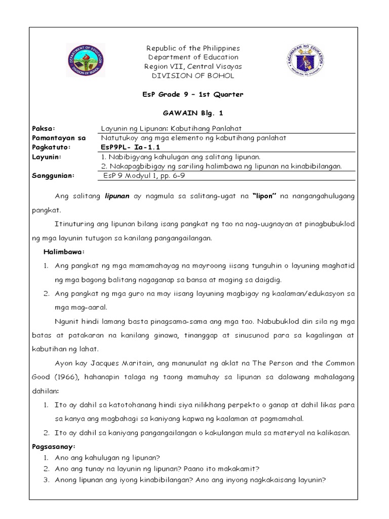 Modyul 1 Layunin Ng Lipunan Kabutihang Panlahat Docx