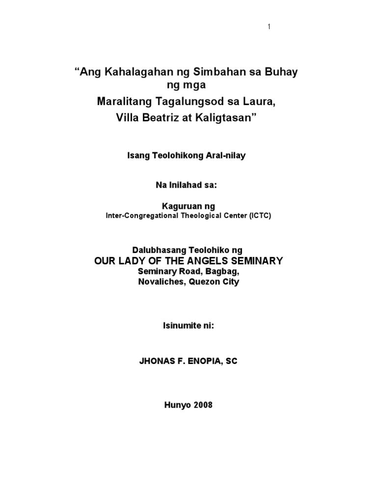 Ang Kahalagahan Ng Simbahan Sa Buhay Ng Mga Maralitang Tagalungsod Sa Laura Villa Beatriz At Kaligtasan