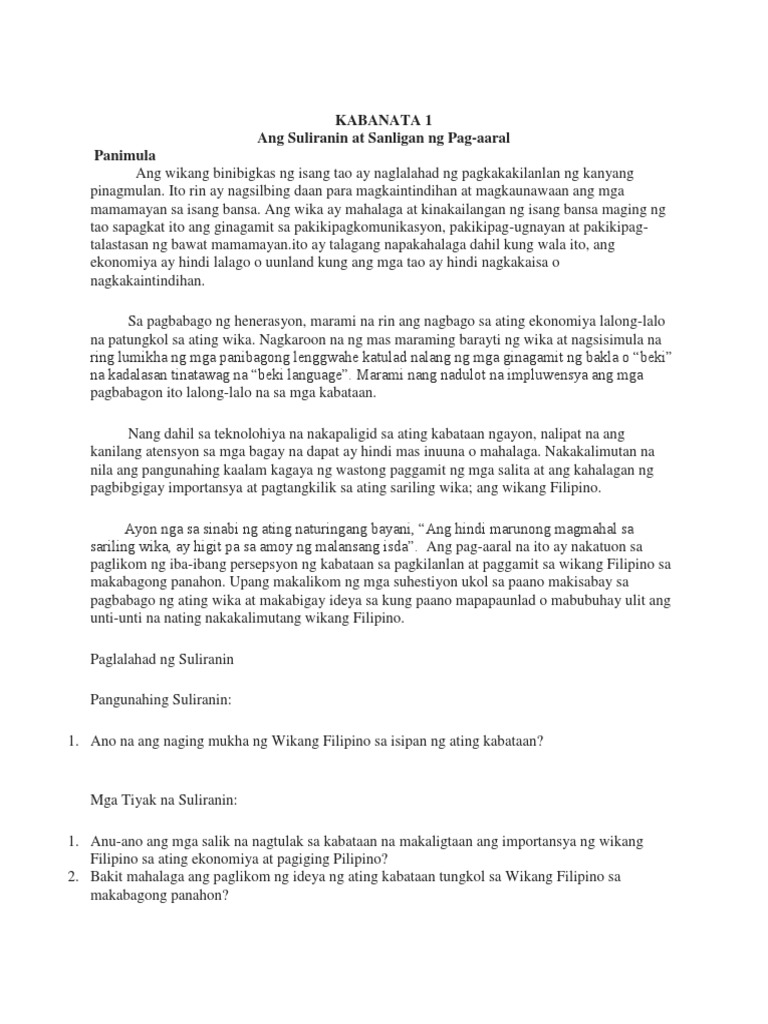 Doc Wikang Filipino Sa Makabagong Panahon Rhon Mangyao Academia Edu