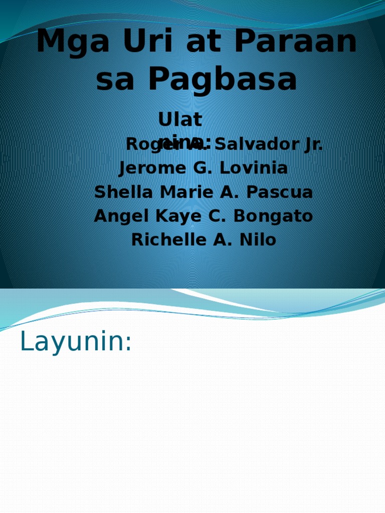Mga Uri At Paraan Ng Pagbabasa By John Robert Tan
