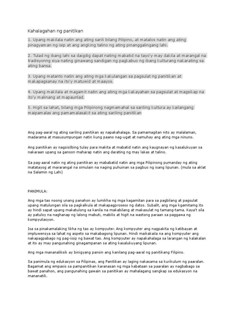 Ang pantikan ay mahalaga sa ating mga buhay dahil ito ang naglalarawan sa mga karanasan kultura at tradisyon ng mga sinaunang Pilipino. Ito rin ay isang uri ng akdang pampanitikan na karaniwang nahahati sa dalawang anyo ang. 28112019 Kahalagahan ng panitikan 7.