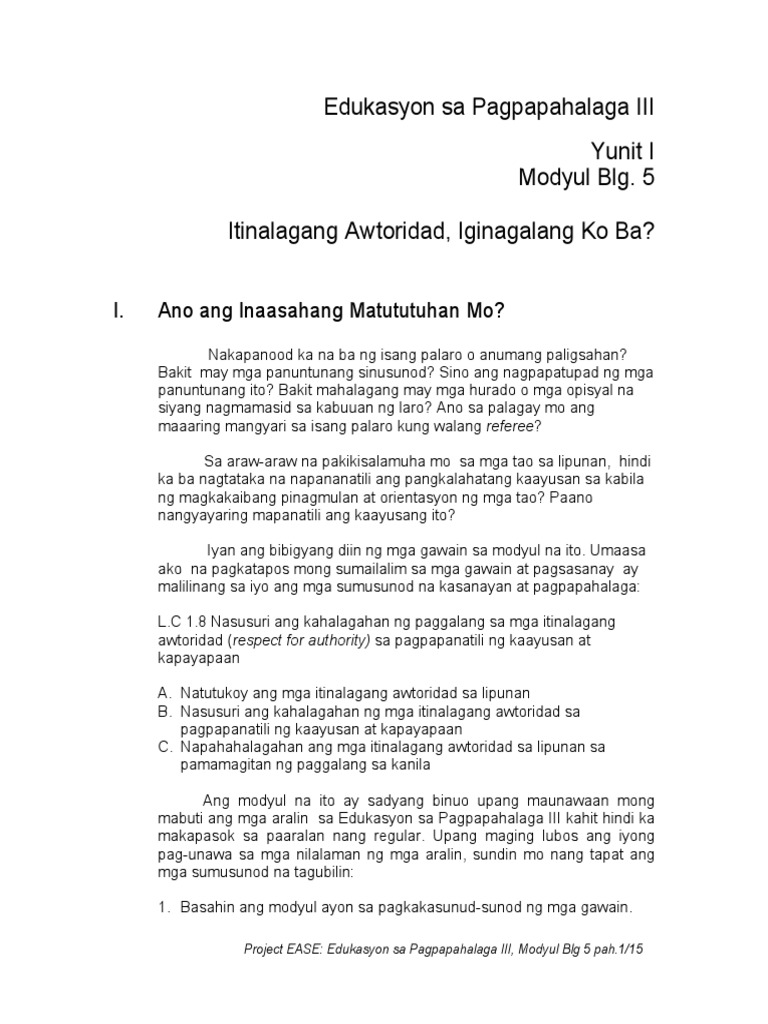 Edukasyon Sa Pagpapakatao Grade 9 Lm