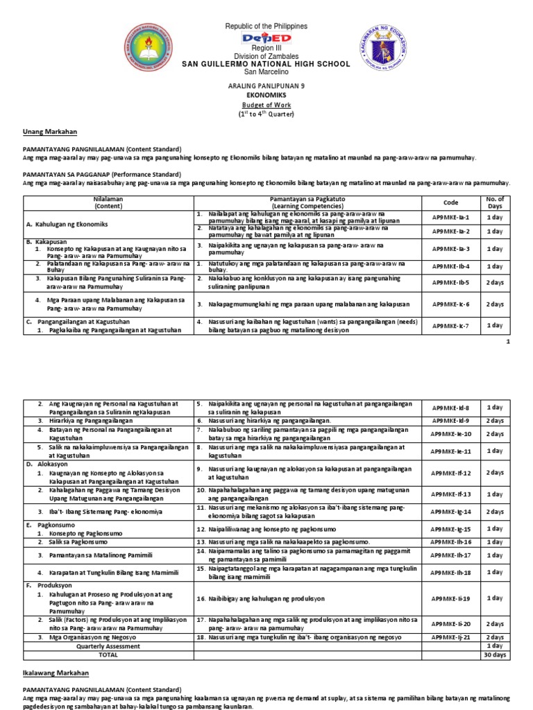 Ibalik ang pagkakaroon ng kinatawan ng Pilipinas sa Cortes. - Patakaran sa pambansang pagbabadget at ang kalakaran ng paggasta. APMAK-IIIh-18 1 code does not match with the number in competency 4.