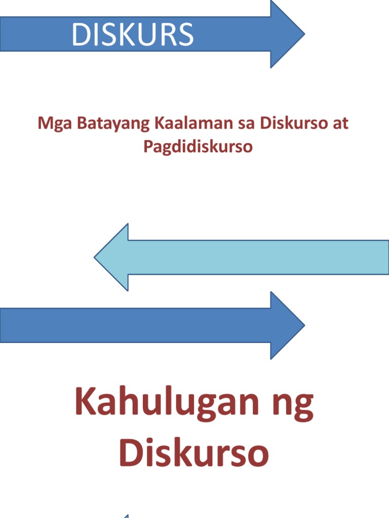 Start studying Yunit 6. Ang pangunahing pagkakaiba sa pagitan ng teksto at diskurso ay hindi tinukoy ng teksto ang isang ahente samantalang ang diskurso ay tumutukoy sa ahente ng impormasyon. Natutukoy ang layunin ng diskurso B.
