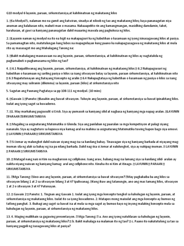 Modyul 6 Layunin Paraan Sirkumstansya At Kahihinatnan Ng Makataong