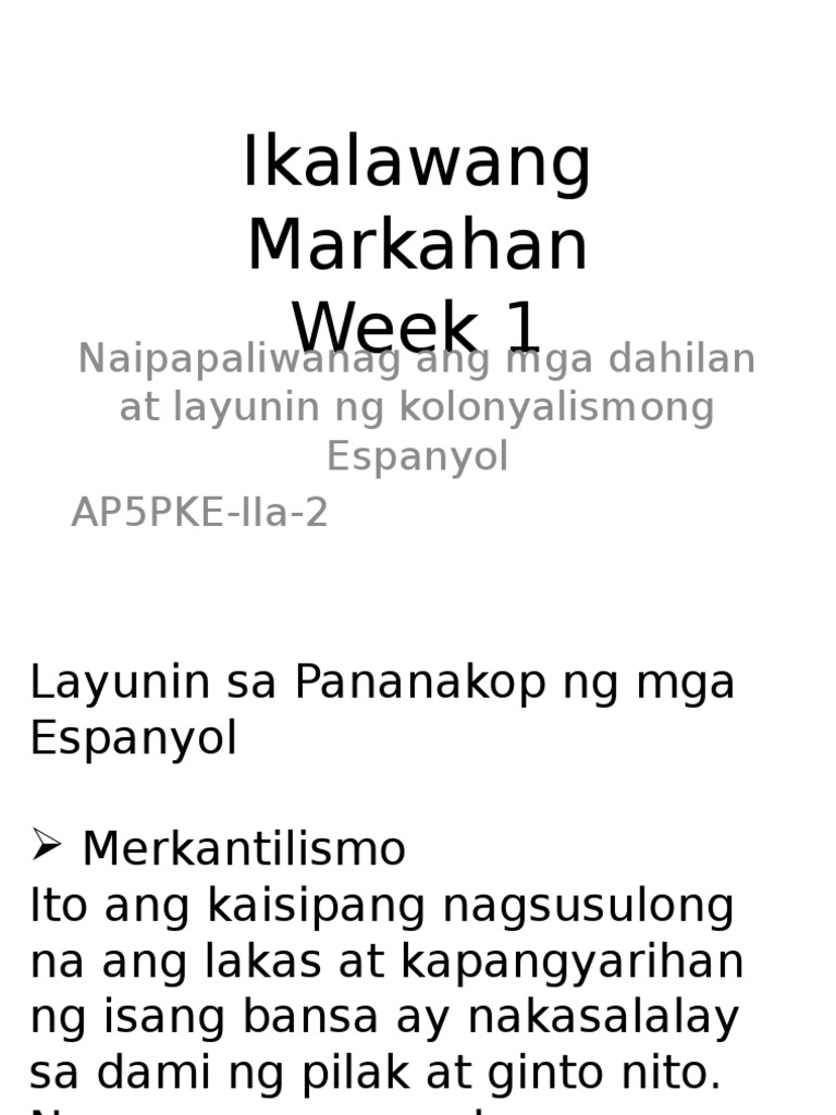 Ap 5 Quarter 2 Week 1 Dahilan Ng Kolonyalismong Espanyol Youtube