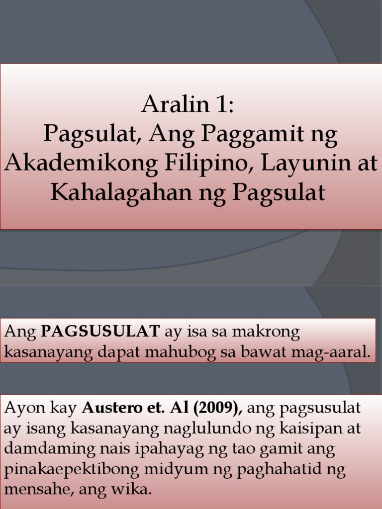 Aralin 1 Pagsulat Ng Akademikong Fil Pptx