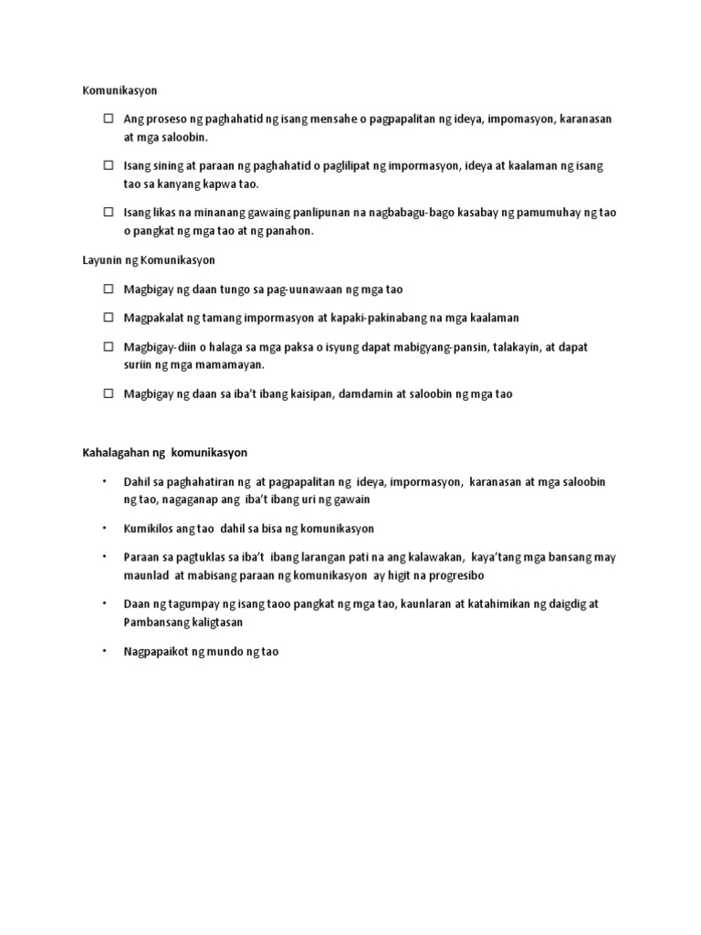 KOMUNIKASYON Mula sa salitang Latin na COMMUNIS na nangunguhulugang karaniwan o panlahat. Help using Flashcards just like. Start studying Komunikasyon sa Akademikong Filipino.