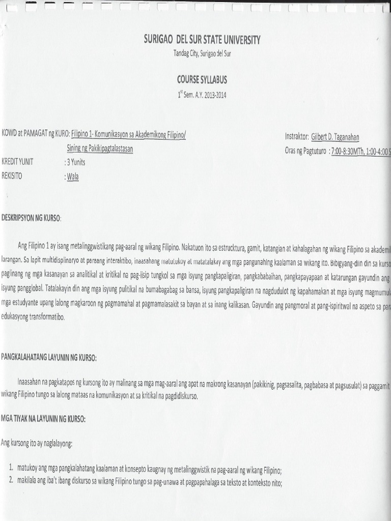 Syllabus Komunikasyon Sa Akademikong Filipino Docx