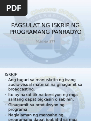 Pagsulat Ng Iskrip Ng Programang Panradyo