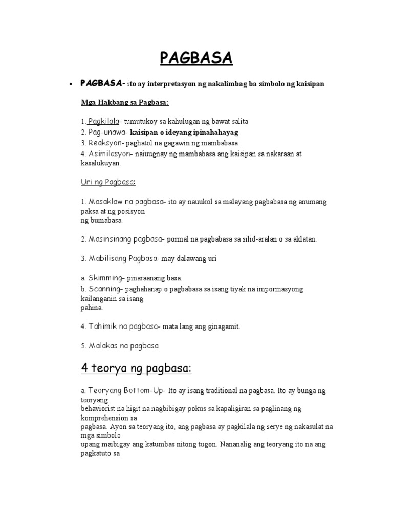 Pagbasa Uri Ng Pagbasa Batay Sa Layunin Teorya At Estratehiya Youtube